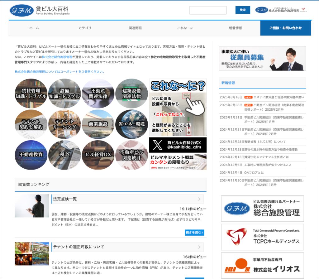 不動産に関する情報をまとめたキュレーションサイトとなります。上記総合施設管理様が運営されております。